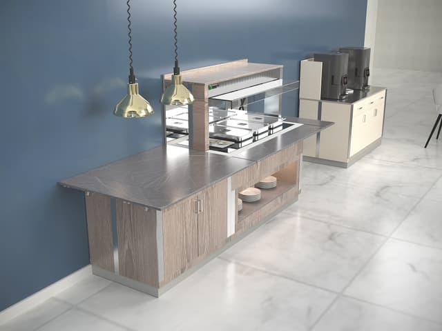 La nostra gamma di moduli self-service si è arricchita di nuove linee e innovative soluzioni con proposte capaci di soddisfare le più svariate esigenze estetiche ma soprattutto capaci di offrire destinazioni d’uso completamente differenti tra di loro, dai moduli DROP-IN, studiati per potersi adattare a qualunque soluzione su misura, alle linee OMNIA e ATHENA, perfette per arredare linee self service all’interno di mense aziendali o scolastiche, fi no alle linee KIDS e HAPPY pensate per i più piccoli. Concept innovativo e dotato di eccellente modularità è invece la linea BREAK, perfetta per arredare con stile e praticità eleganti sale colazioni o aree convegni.