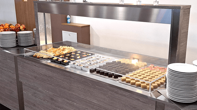 La nostra gamma di moduli self-service si è arricchita di nuove linee e innovative soluzioni con proposte capaci di soddisfare le più svariate esigenze estetiche ma soprattutto capaci di offrire destinazioni d’uso completamente differenti tra di loro, dai moduli DROP-IN, studiati per potersi adattare a qualunque soluzione su misura, alle linee OMNIA e ATHENA, perfette per arredare linee self service all’interno di mense aziendali o scolastiche, fi no alle linee KIDS e HAPPY pensate per i più piccoli. Concept innovativo e dotato di eccellente modularità è invece la linea BREAK, perfetta per arredare con stile e praticità eleganti sale colazioni o aree convegni.