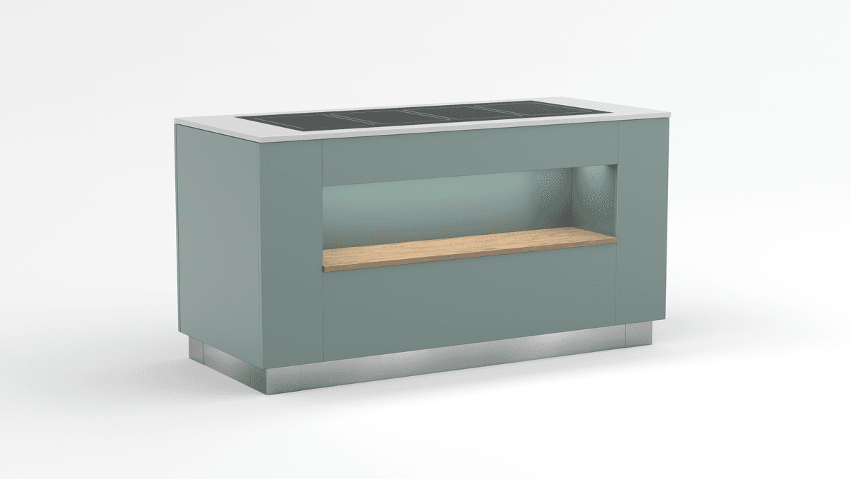 Selbstbedienungs-Buffet-Linie, jeder LUNAR wird zusammen mit dem Kunden durchdacht und entworfen, um ein einzigartiges Produkt zu schaffen, das allen Anforderungen gerecht wird. Warme und kalte Drop-in, neutrale Arbeitsplatten, Tellernischen und helle Aufzüge mit Schutzblech sind alle auf dem Hauptkörper integrierbar. Abgerundet wird das Ganze durch eine große Auswahl an Holzfarben und -finishs. Die Silver-, Gold- und Platinum-Varianten unterscheiden sich nach Preisklasse und Art der verfügbaren Materialien: