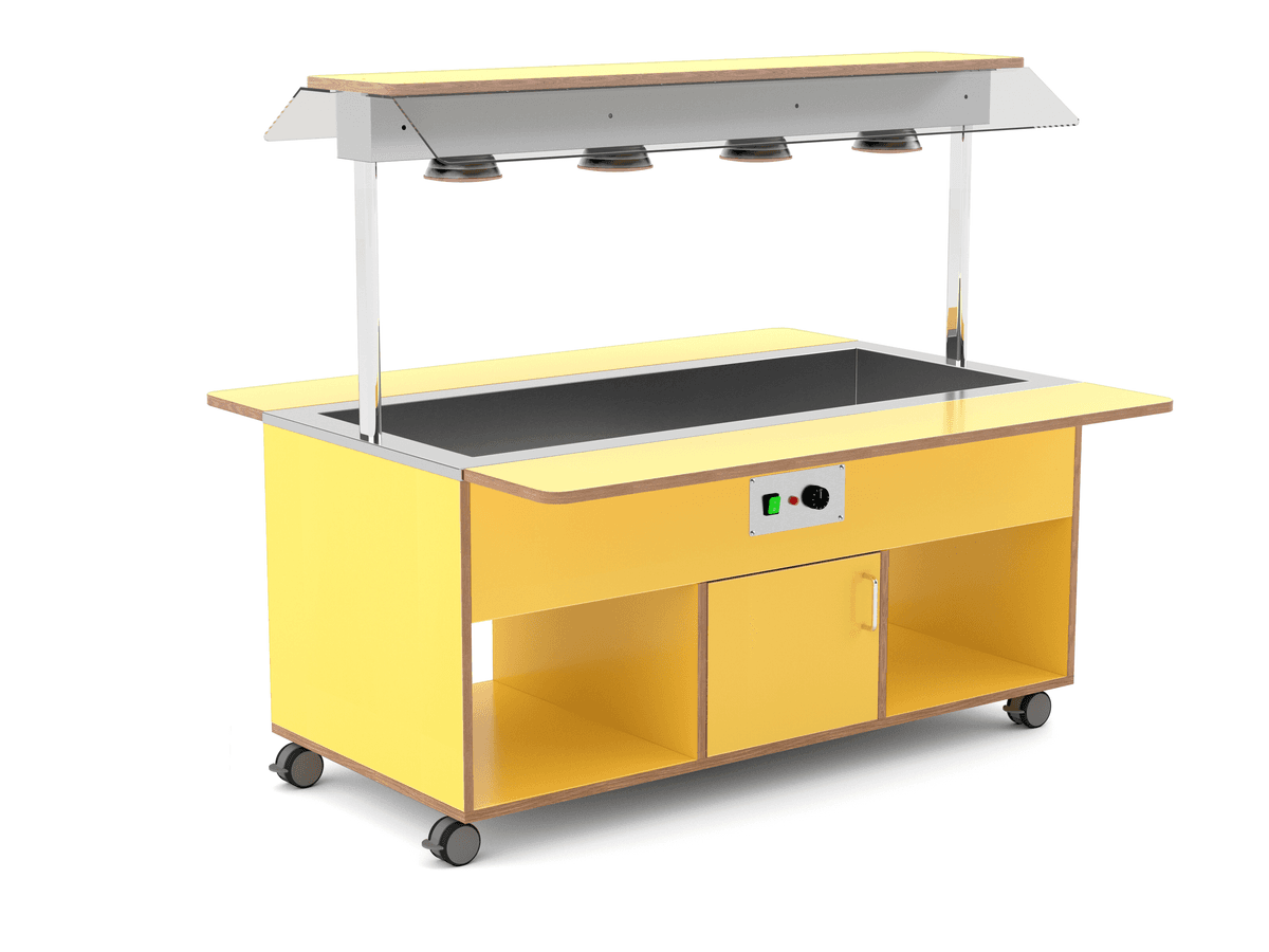 La línea de buffets para escuelas HAPPY combina el servicio profesional con un equipo divertido y fácil de usar para nuestros clientes más pequeños con una altura desde el suelo reducida a 70 cm. Los bordes de la cúpula y el soporte del plato están redondeados para mayor seguridad. Disponible en una amplia gama de colores laminados para hacer que la distribución de las comidas sea un intervalo alegre.