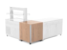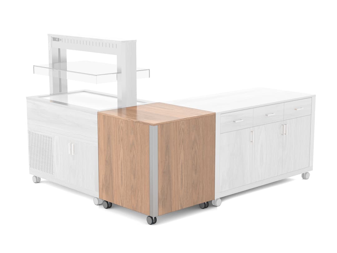 El módulo Athena AQ es ideal para configuraciones que requieren una línea angular. Los 2 lados no visibles presentan el soporte de enganche a los módulos contiguos. 2 Ruedas con freno de serie para garantizar una mayor estabilidad. Se puede completar con varios accesorios y complementos de la línea Athena.