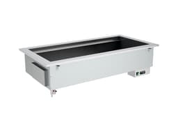 Drop-in a calefacción baño-maría. Equipado con grifo de descarga y calentado por resistencias de silicona adhesivas. La temperatura del tanque está regulada por un termostato digital. Capacidad 2-3-4-5 GN 1/1, tanques GN no incluidos. Carga de agua en el tanque con desagüe demasiado lleno suministrado como estándar.