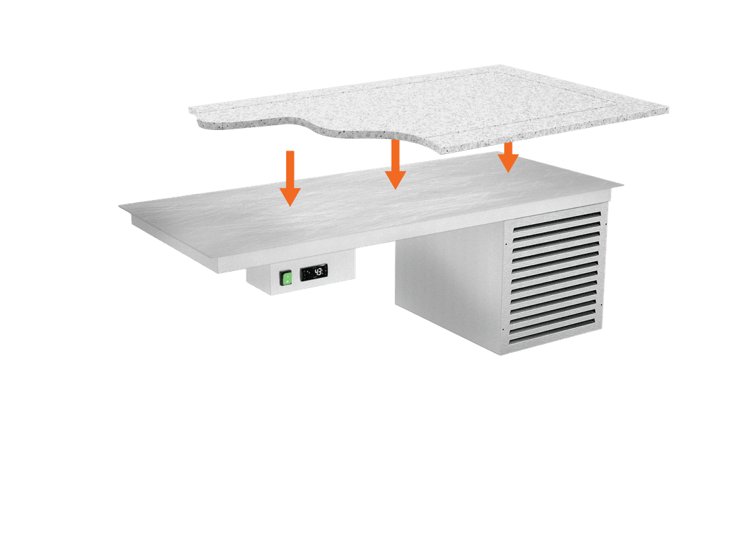 Placa refrigerada debajo de la encimera.