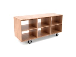 La ausencia de una pared posterior permite además su uso en ambos lados y la forma cuadrada ofrece un amplio plano de apoyo.