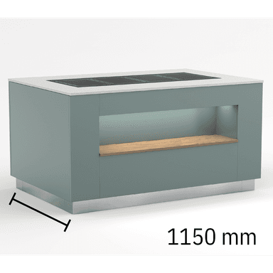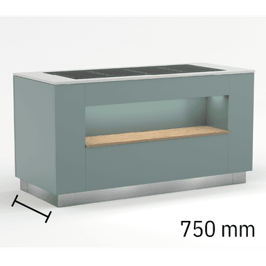 Mobiliario modular creado a medida, cada LUNAR está pensado y diseñado junto con el cliente para crear un producto único que satisface todas las necesidades. Drop-in cálidos y fríos, encimeras neutras, nichos para platos y elevadores luminosos con paraguas se pueden integrar en el cuerpo principal. Una amplia gama de colores y acabados de madera para elegir. Las variantes Silver, Gold y Platinum se diferencian por el rango de precios y el tipo de materiales disponibles: