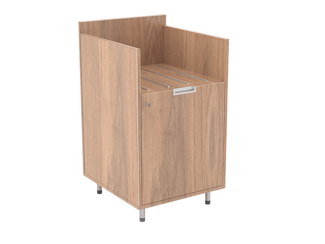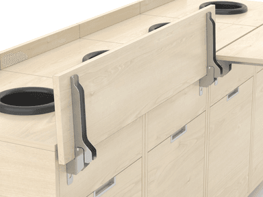 Simple en las líneas pero altamente personalizable como todos los productos Rocam, POLY está disponible en 22 acabados de madera laminada y cinco modelos básicos: con bascula oscilante o orificio para la entrega de residuos sólidos y líquidos, devolución de bandejas y devolución de vajillas. La doble naturaleza permite completar los espacios en los que se coloca, proporcionando en un solo lugar tanto la recogida de residuos como la devolución de bandejas, vasos, platos y cubiertos.