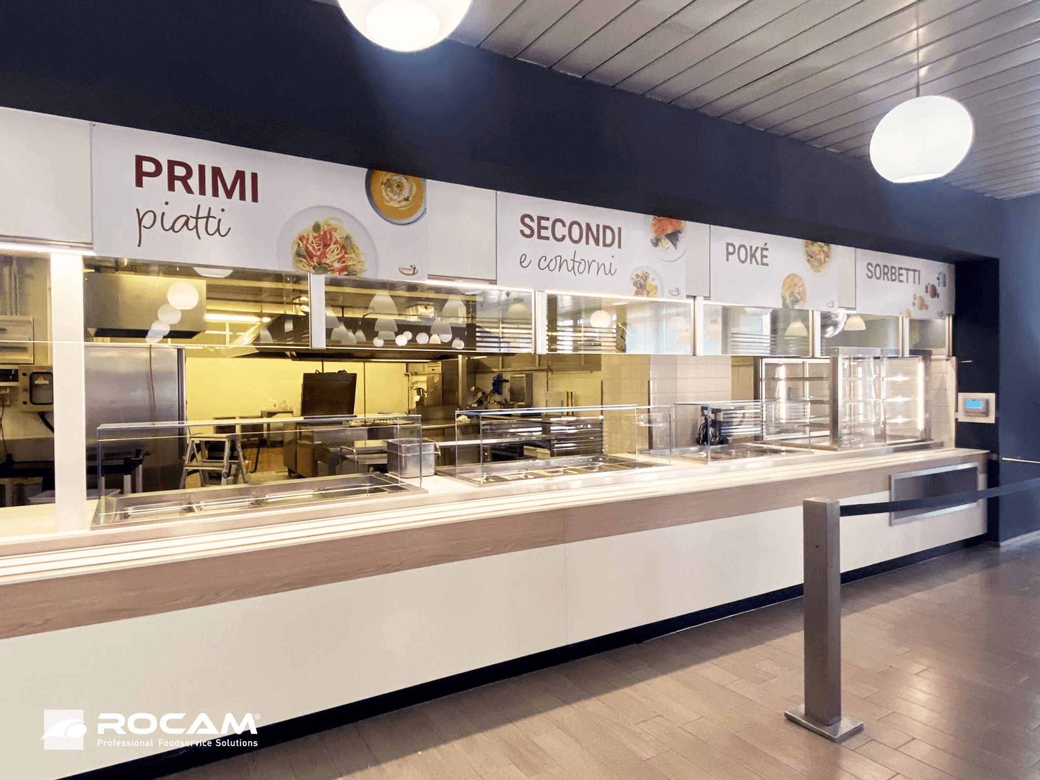 Un agradecimiento a Dima arredamenti que ha elegido nuestra gama de drop-in para la realización de este espléndido restaurante corporativo, previendo puestos para platos calientes y fríos gracias a la versatilidad de la gama drop-in.