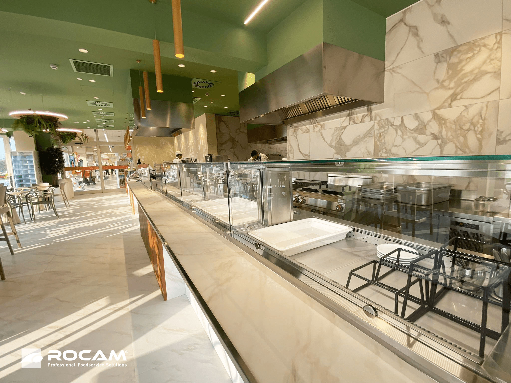 ¿Qué obtienes si combinas la tecnología OMNIA, la elegancia de materiales refinados y el conocimiento del sector? Una línea de autoservicio con un fuerte impacto estético, funcional y moderna, perfectamente integrada en el contexto del centro comercial en el que se ha insertado.