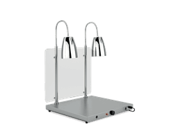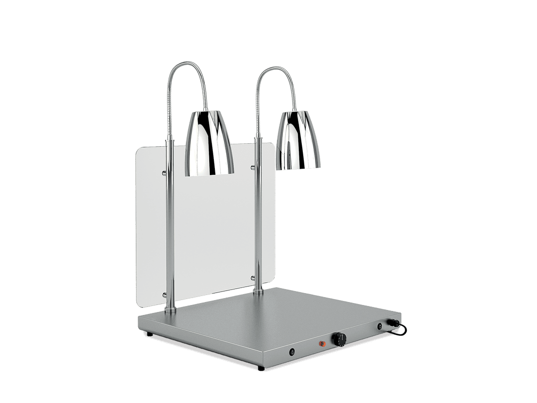 Plaque chaude combiné avec lampes à infrarouges en taille GN-Gastronorm pour le maintien au chaud des repas. La base, en acier inoxydable AISI 304, est combinée avec 2 bulbes à infrarouge avec lumière blanche montée sur un raccord flexible et directionable. L’abat-jour monté peut avoir un design classique (P1) ou moderne (P2). La plaque et les lampes ont un allumage indépendant entre eux. Le chauffage de la plaque est parmi une résistance collée au-dessous et la température est réglée par un thermostat mécanique (+30°/+90°), un voyant lumineux indique quand l’appareil est en fonction. Vitrage en Plexiglass® de série. Cable d’alimentation spiralé doté d’une prise Shuko type F de série.