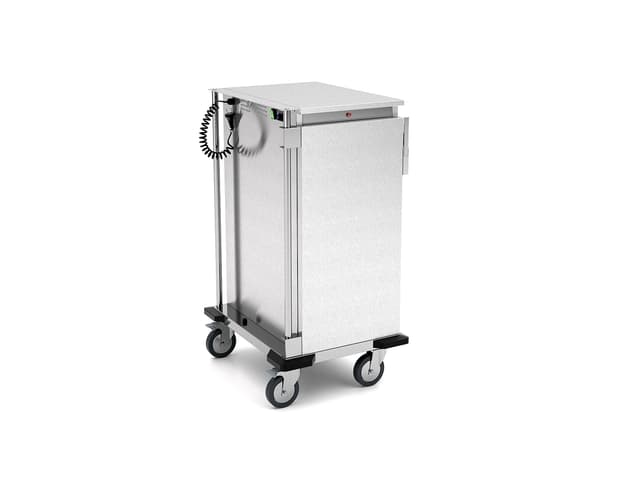 Gamma di carrelli per banchetti e armadi riscaldati su ruote in acciaio inox AISI 304 disponibili in 2 altezze e 2 dimensioni GN per rispondere a tutte le esigenze di spazio: dall’utilizzo in cucina, al trasporto a location esterne o per lo stoccaggio in piccoli ambienti. Perfetti per il trasporto e il mantenimento di vasche, vassoi o teglie. Costruzione a doppia parete coibentata e temperatura regolata da termostato elettronico. Ogni carrello è dotato di 2 pratiche maniglie di spinta a tutt’altezza e gli sportelli, apribili a 270°, sono dotati di guarnizione a tenuta termica. Il modello BAKE è dotato di uno sfiatatoio per ventilazione passiva e per la regolazione dei livelli di umidità all’interno del vano riscaldato. Di serie ogni modello ha 4 paracolpi angolari anti-traccia e 2 ruote con freno. Tutti i modelli sono dotati di guide di sostegno estraibili per permettere la perfetta pulizia del vano interno. Le guide di sostegno possono essere a “C” antiribaltamento per vasche GN o a “L” per vassoi e teglie.