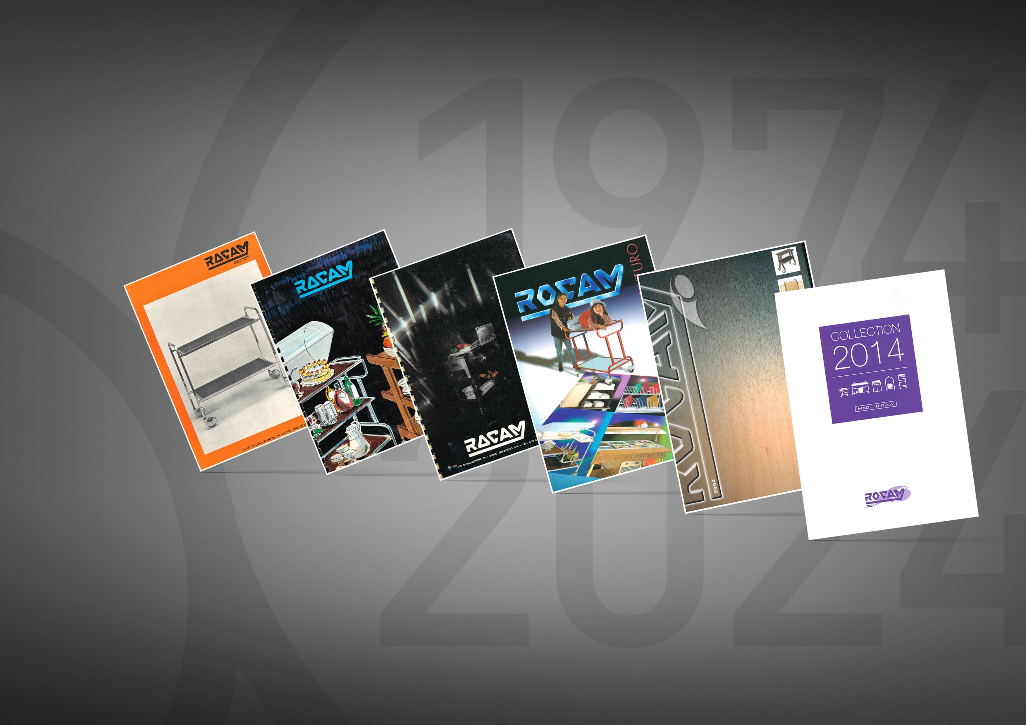 ROCAM prende vita in uno scantinato dell'entroterra milanese nell'aprile del 1974, grazie a un'intuizione del fondatore Ezio Rastelli. Il boom economico di quegli anni e l'aumento crescente di mense, bar e ristoranti hanno creato la necessità di una distribuzione rapida e confortevole dei pasti durante le pause pranzo lavorative, portando alla nascita del nostro primo carrello di servizio in acciaio, interamente realizzato a mano.